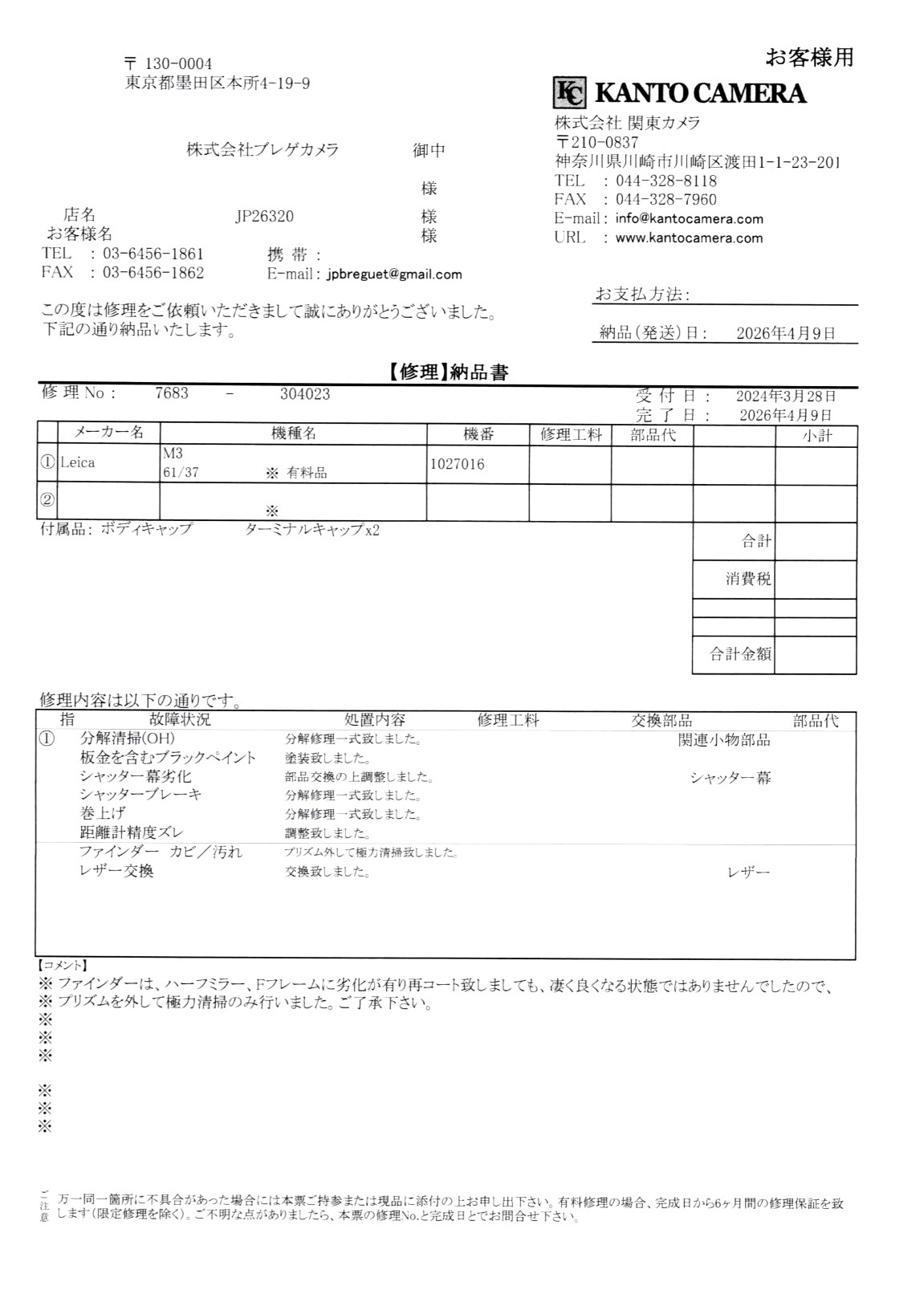 在日本名店「關東相機」進行了全面维护保养和后置黑漆,漆面細膩均勻,狀態優秀。