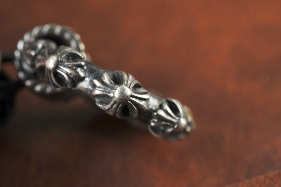 Chrome Hearts银器是一个美国的银器品牌,闻名世界,日本,香港许多明星最热爱的饰品,Chrome Hearts带有中世纪艺术的宗教精神,在优美的弧线与染黑的阴影之下,营造出独特而迷人的丰采.它还是充满摇滚风格的银饰,其强烈的原创设计性一直稳据银饰品牌王座。而风靡香港。它的产品包罗万象,除了银首饰,衣服,钱夹上的银纽扣,皮夹克,帽子,皮包,T-恤,太阳眼镜,925纯银制的水,甚至连矿泉水都有CHROMEHEARTS的影子,帝王不愧是帝王。