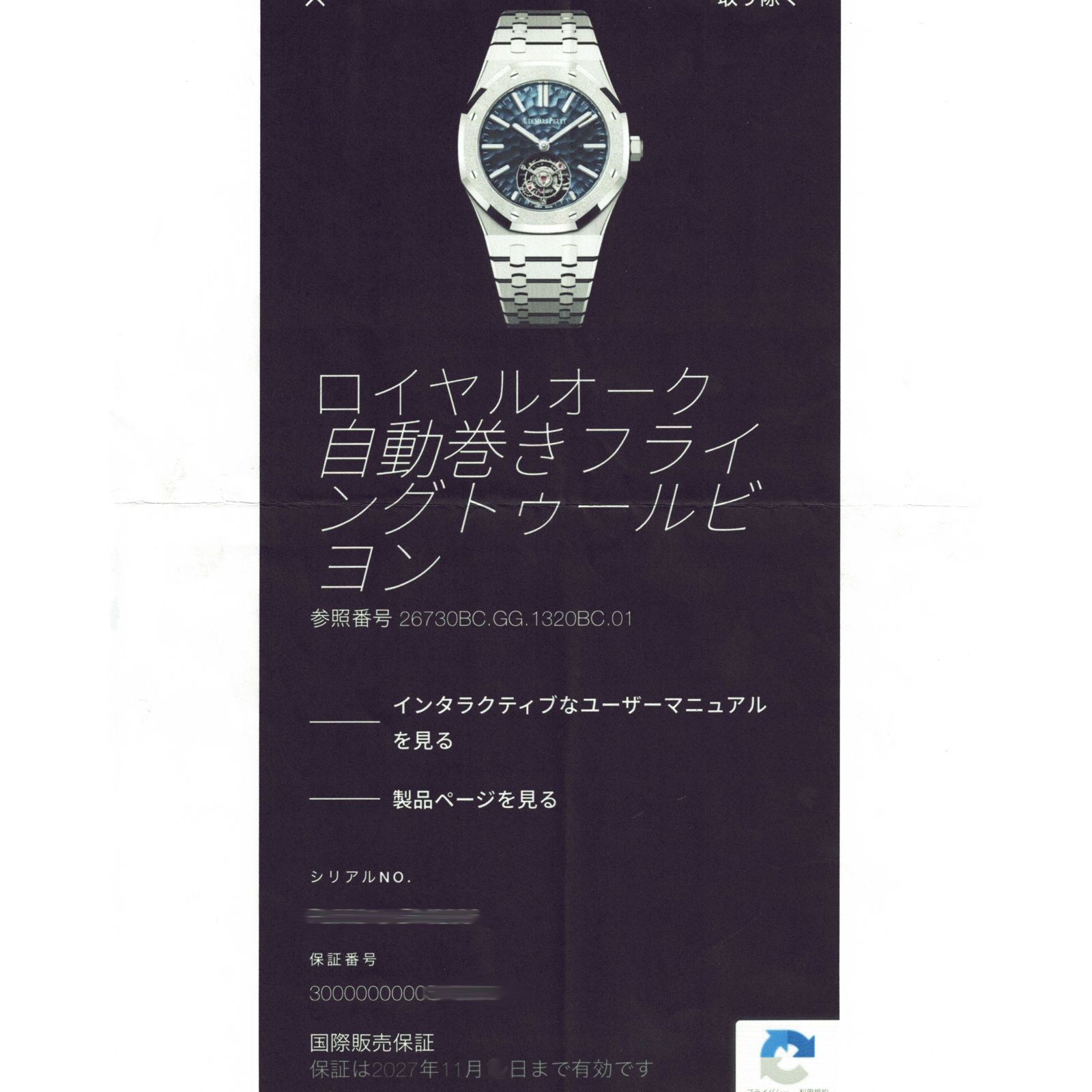 Audemars Piguet/爱彼皇家橡樹 18K白金陀飞轮 Ref. 26730BC.GG.1320BC.01#HK11360