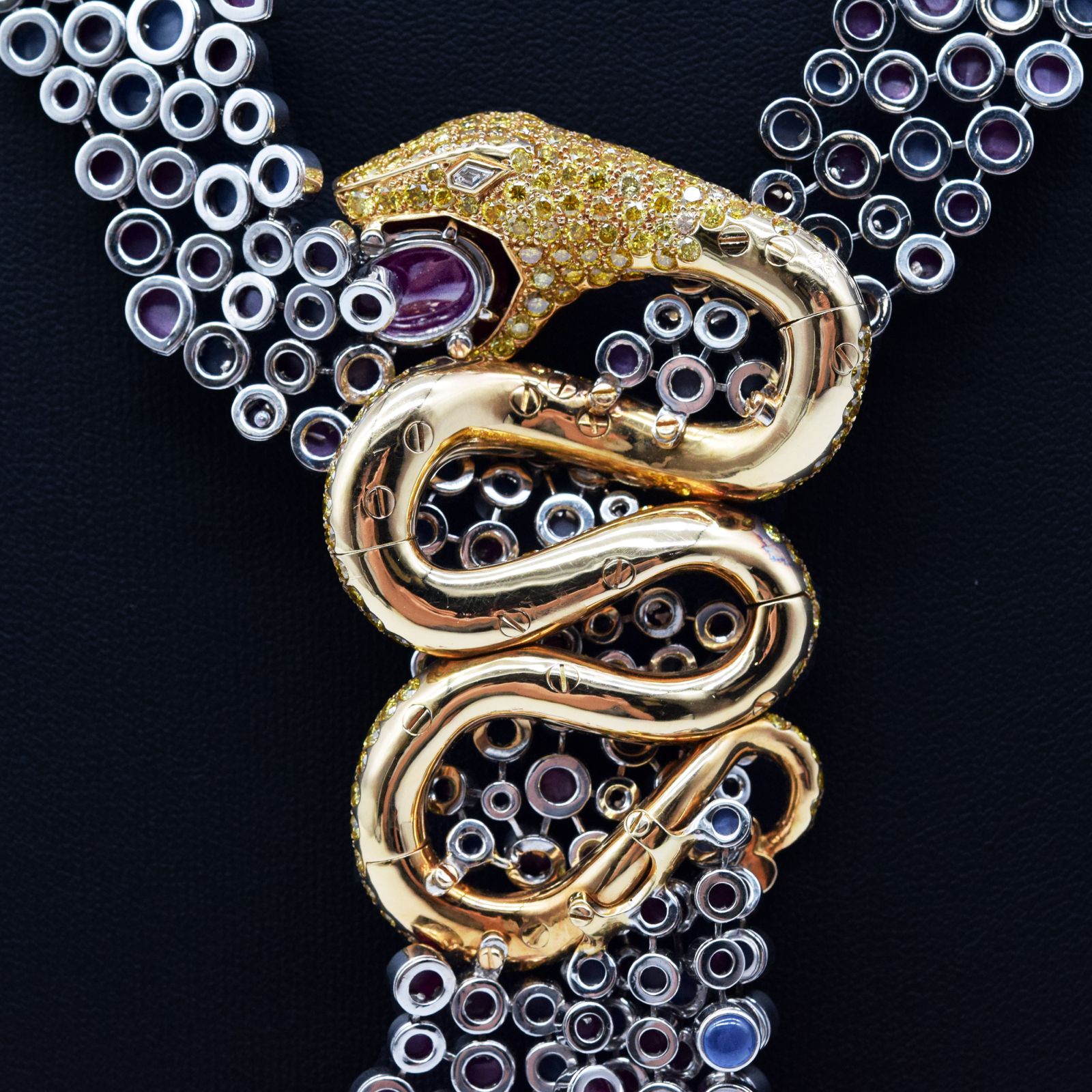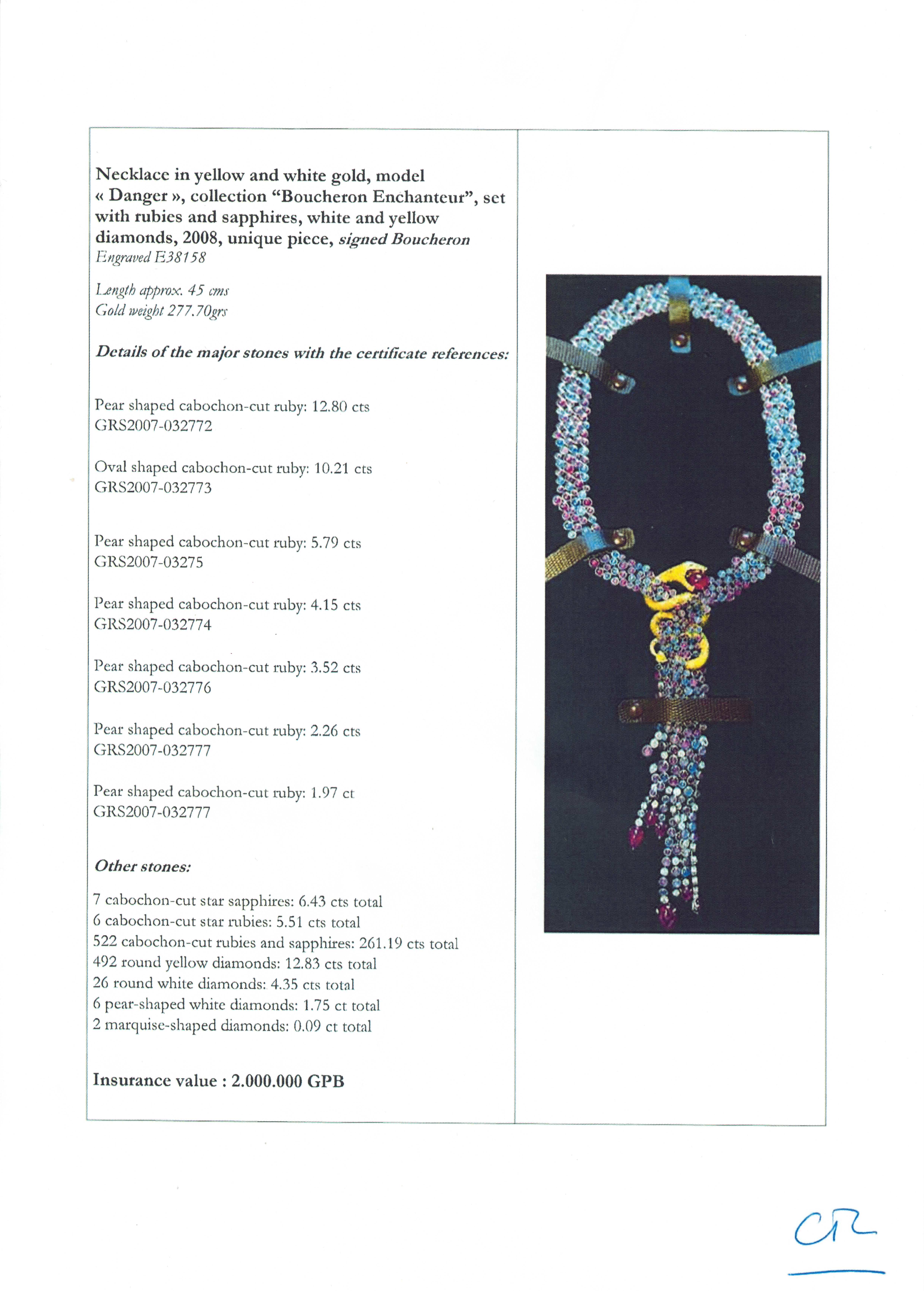 Boucheron/寶詩龍 Boucheron Enchanteur Danger 150週年紀念 限量版 18K金鑲嵌鑽石紅藍寶石蛇形頸鏈#HK11559