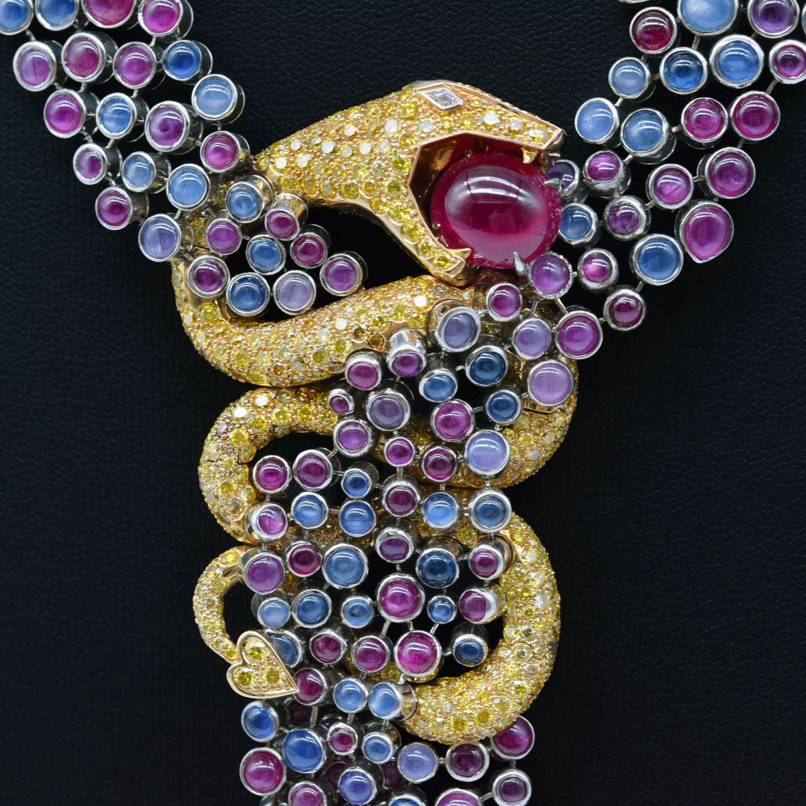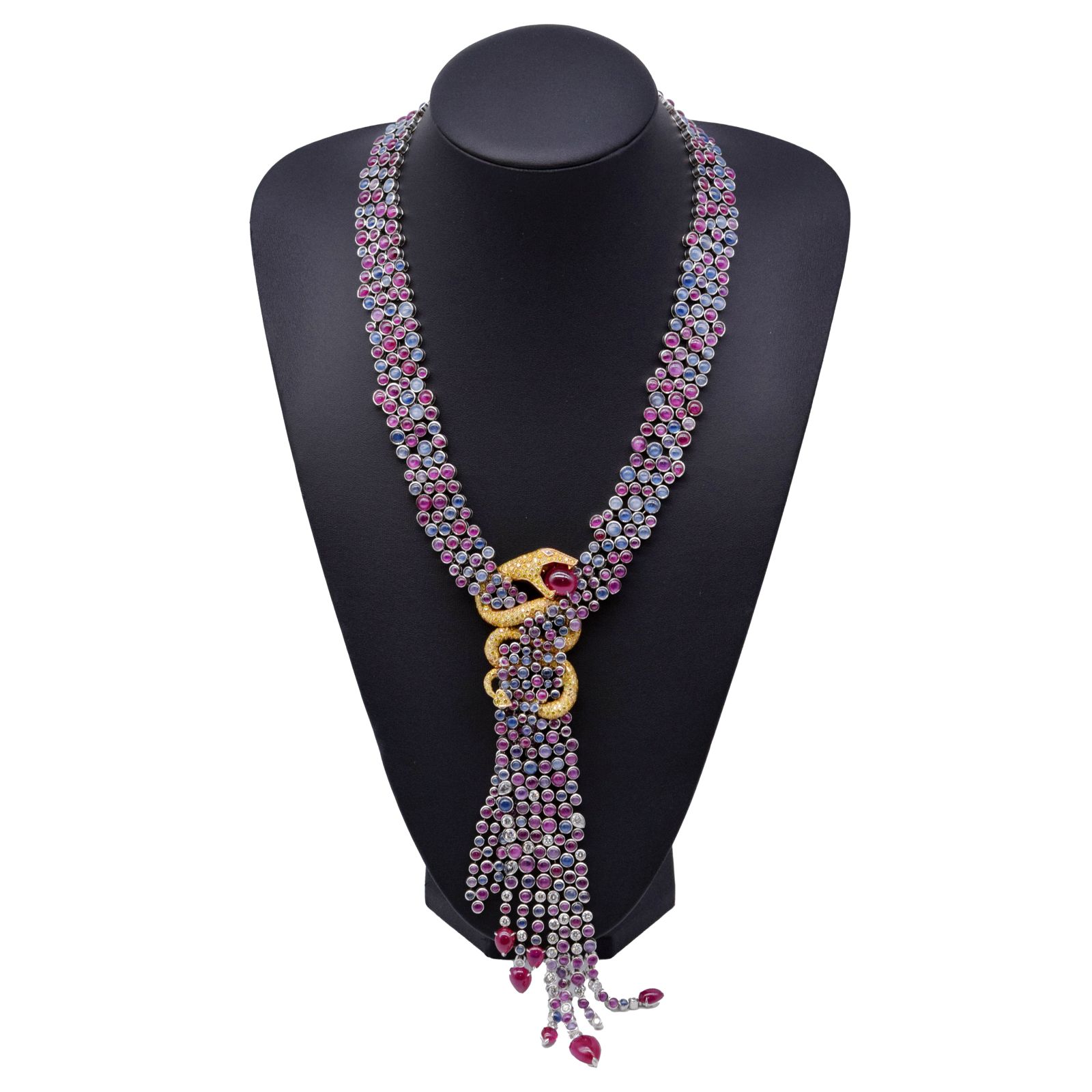 Boucheron/寶詩龍 Boucheron Enchanteur Danger 150週年紀念 限量版 18K金鑲嵌鑽石紅藍寶石蛇形頸鏈#HK11559