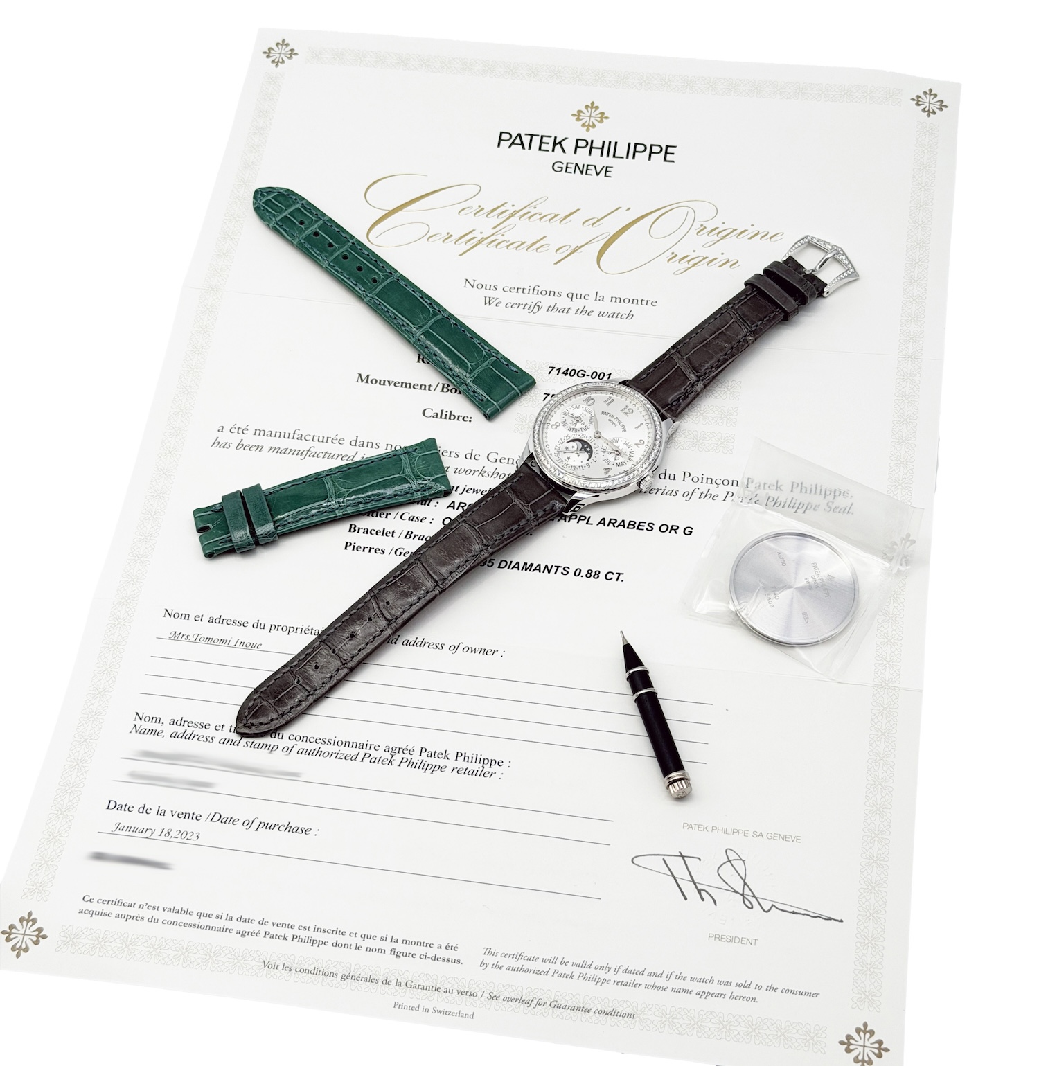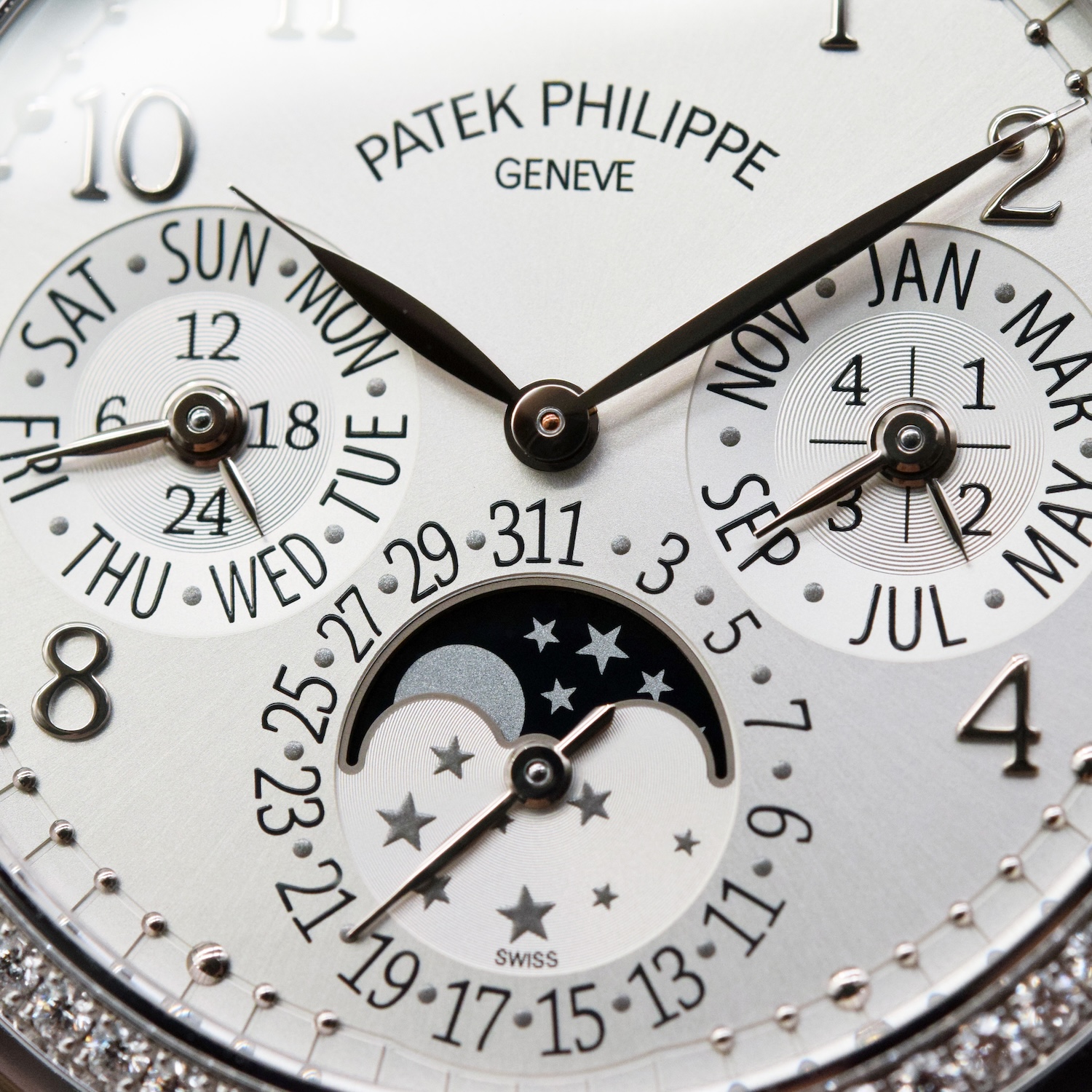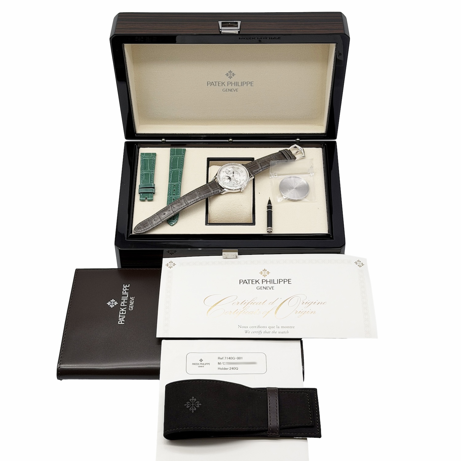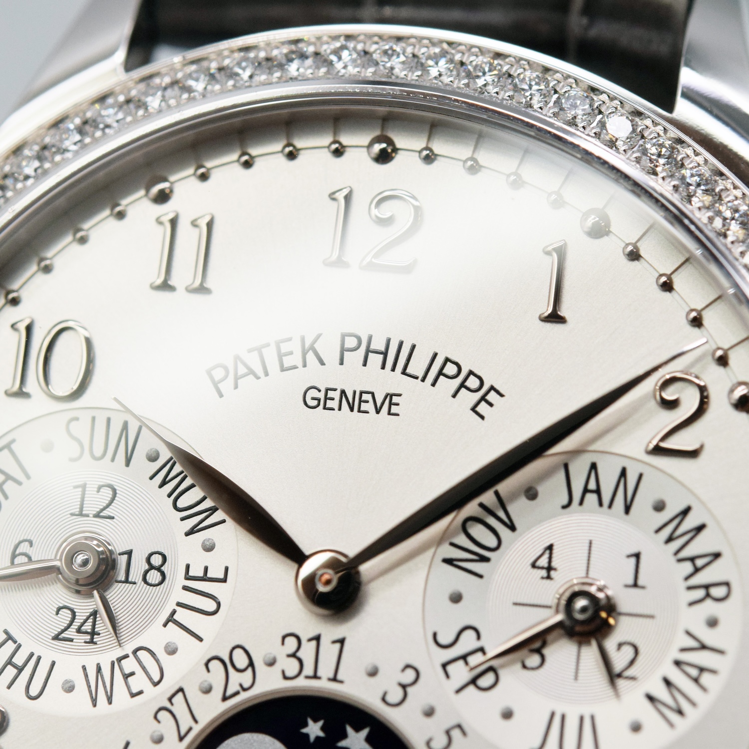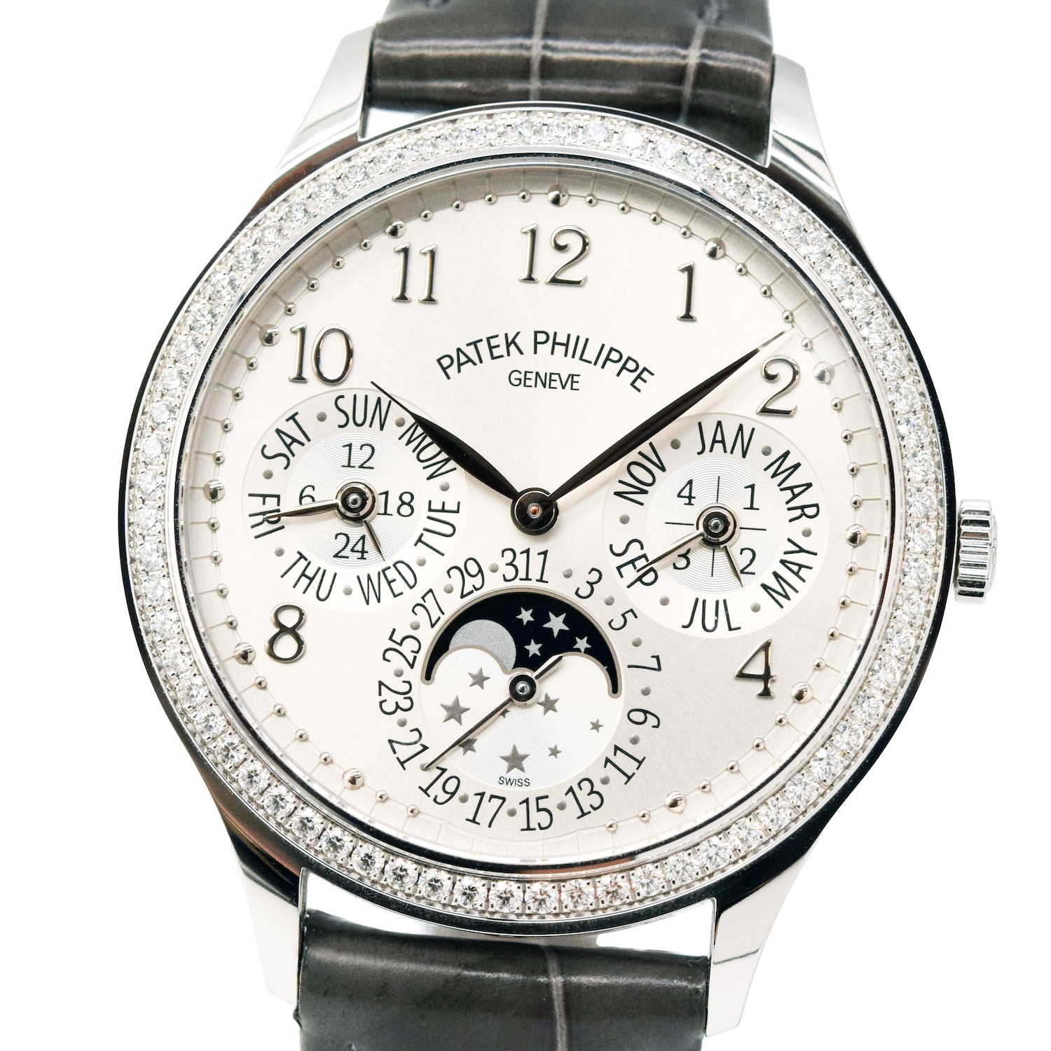 PATEK PHILIPPE/百达翡丽 GRAND COMPLICATIONS 超級複雜功能時計系列 7140G-001 月相、年历功能 18K白金鑲鑽腕錶#HK11660