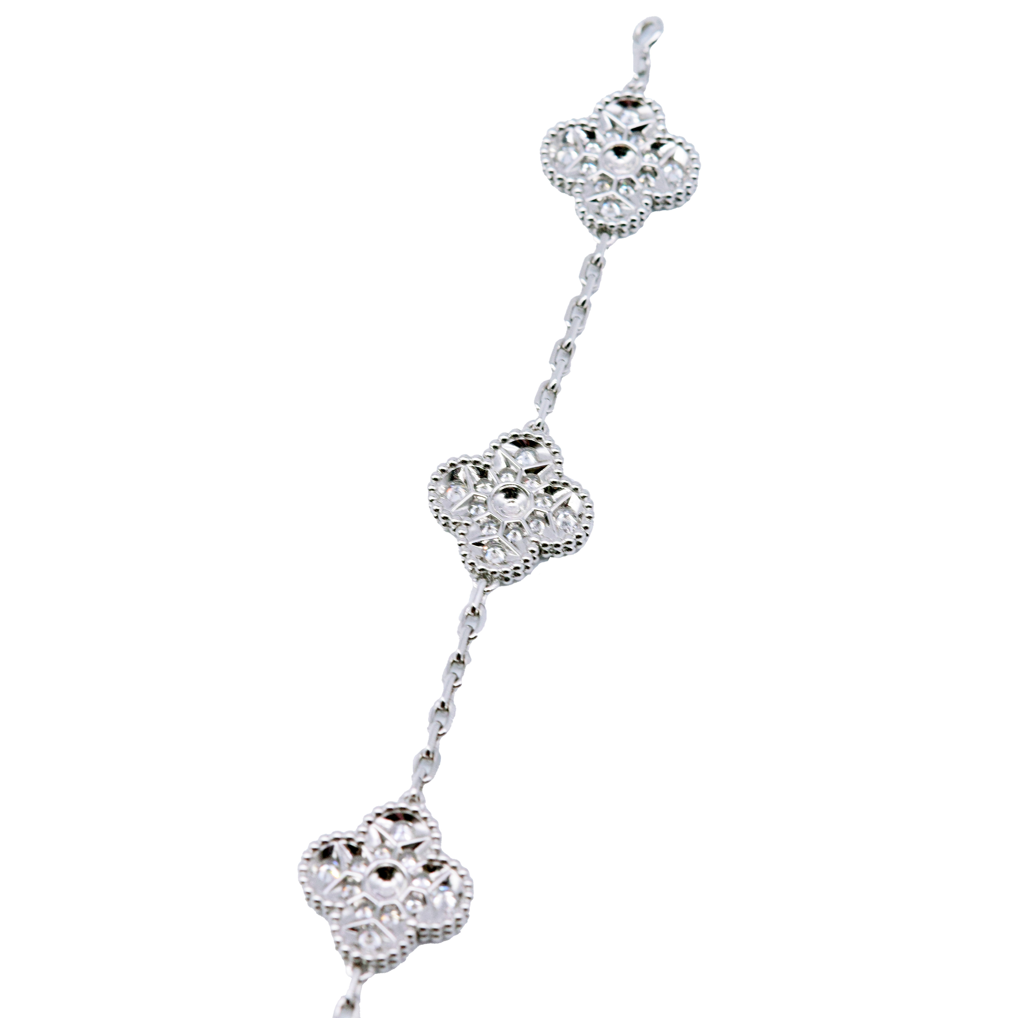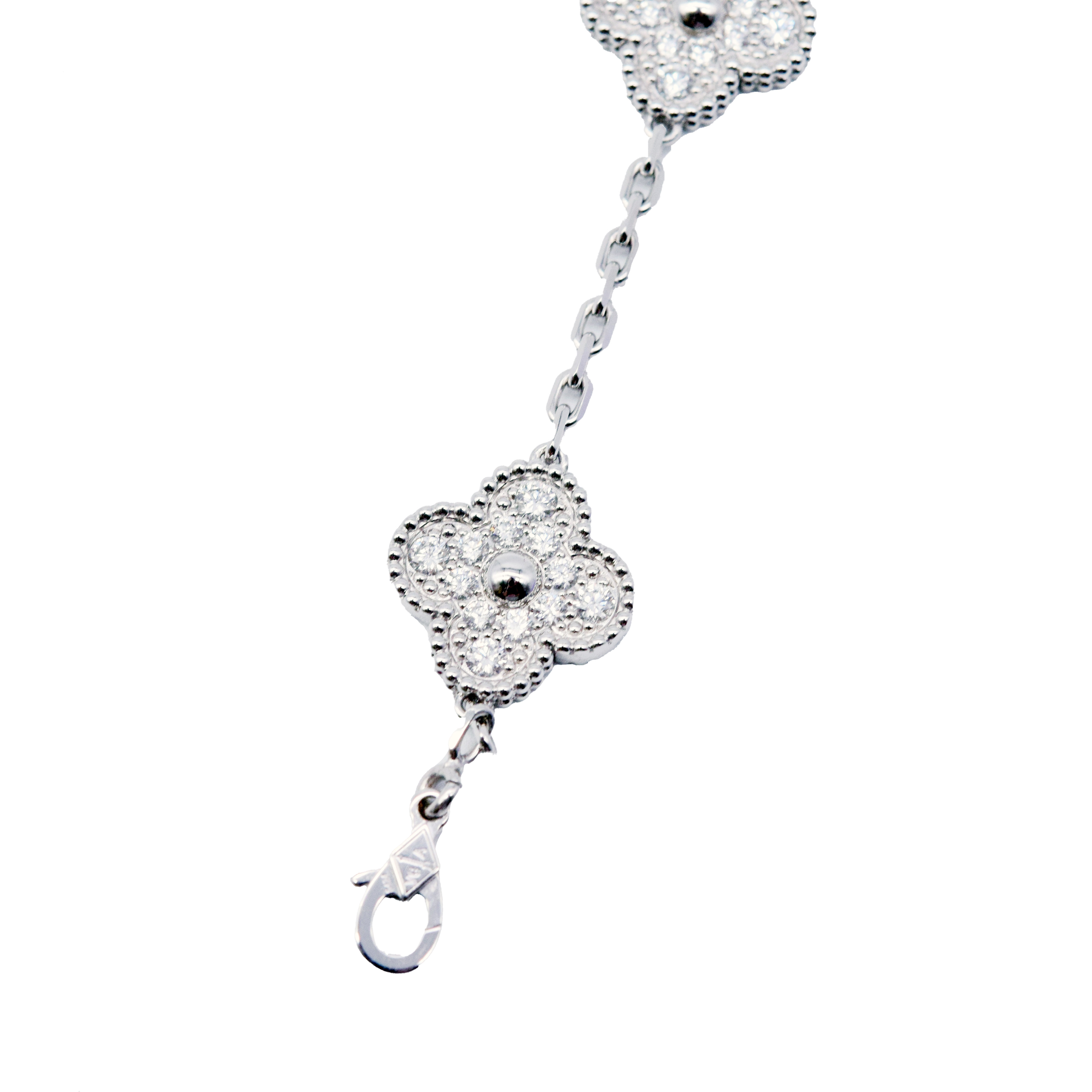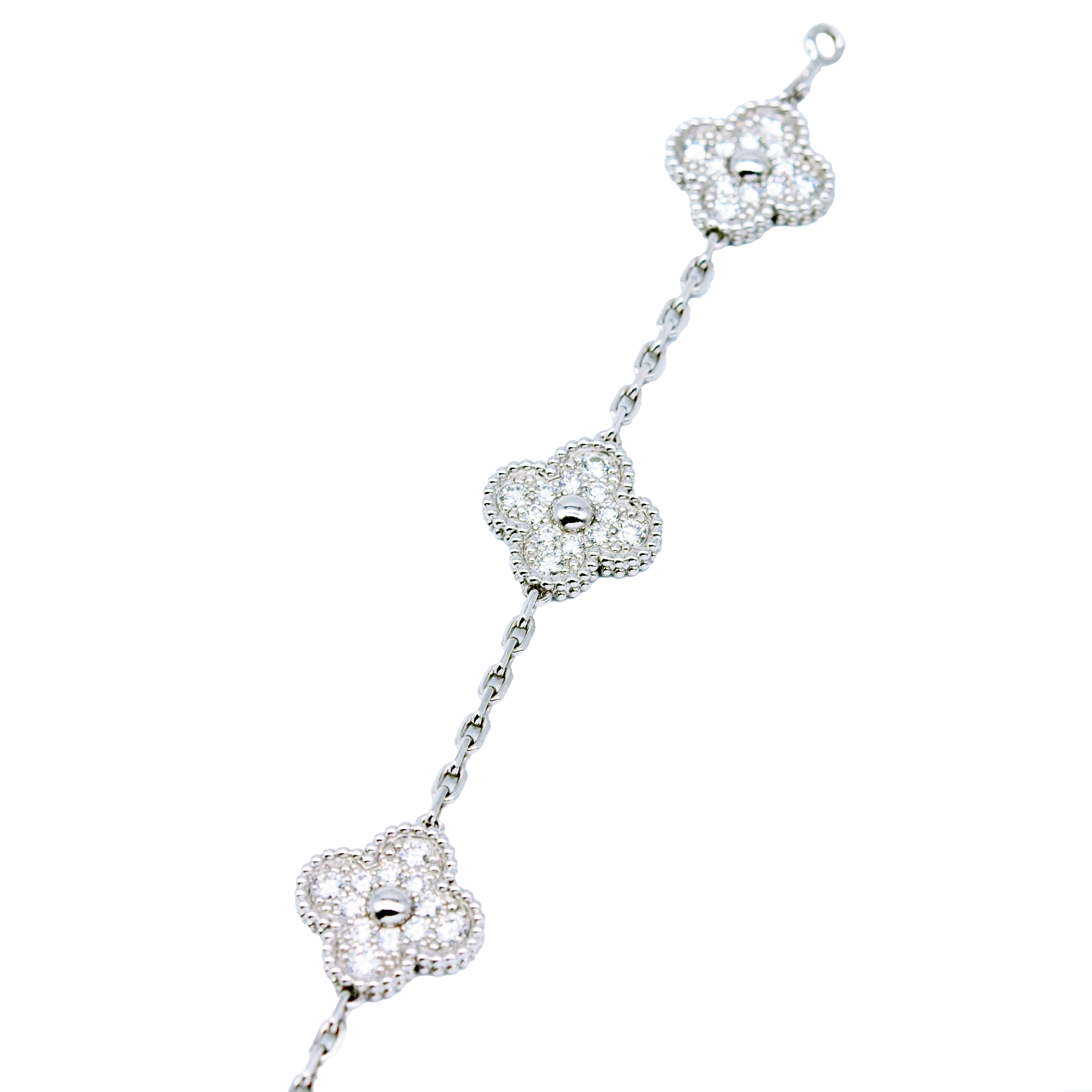 Van Cleef & Arpels/梵克雅寶 VCARA41500 Vintage Alhambra 5枚四葉幸運圖騰 18K白金鑽石手鏈#HK11554