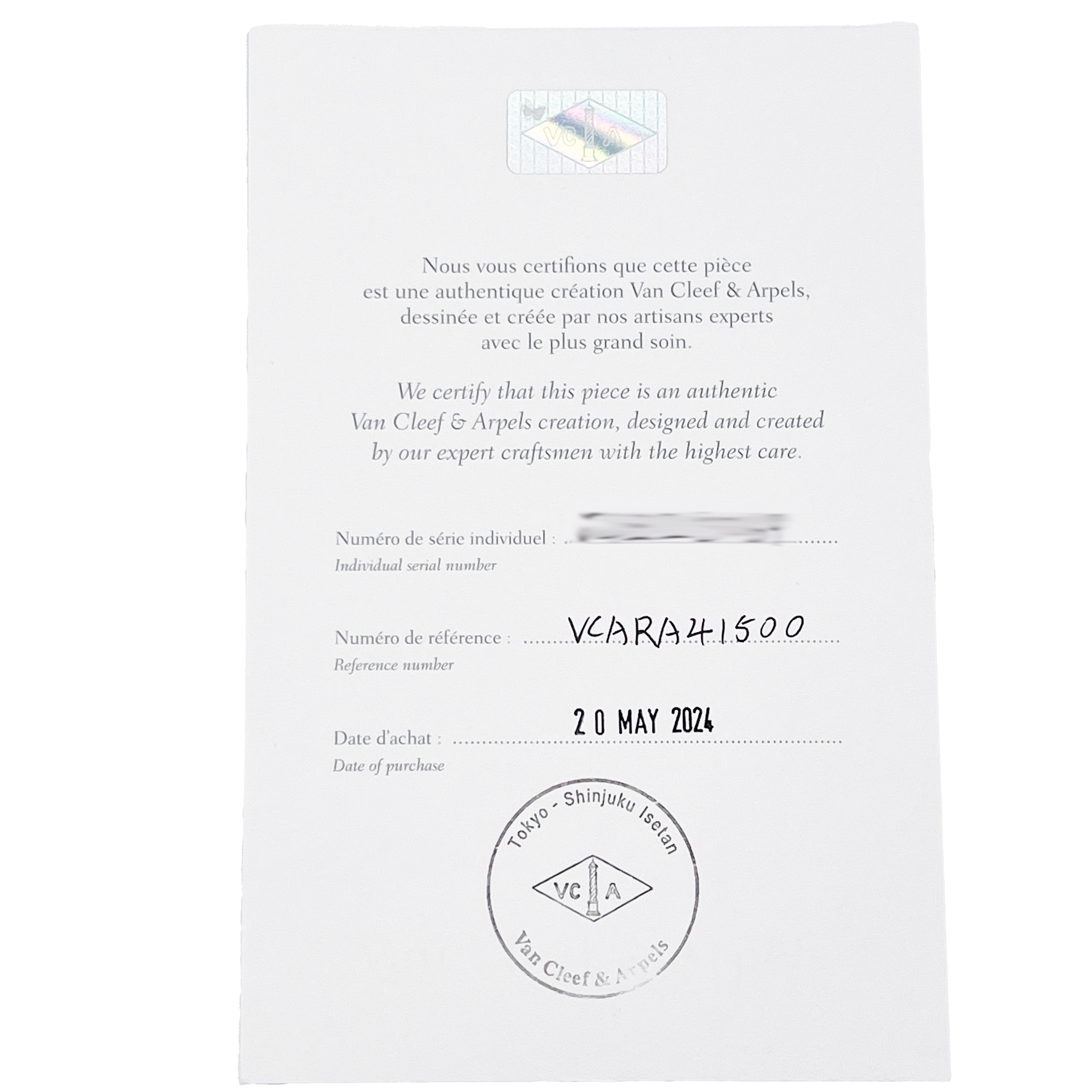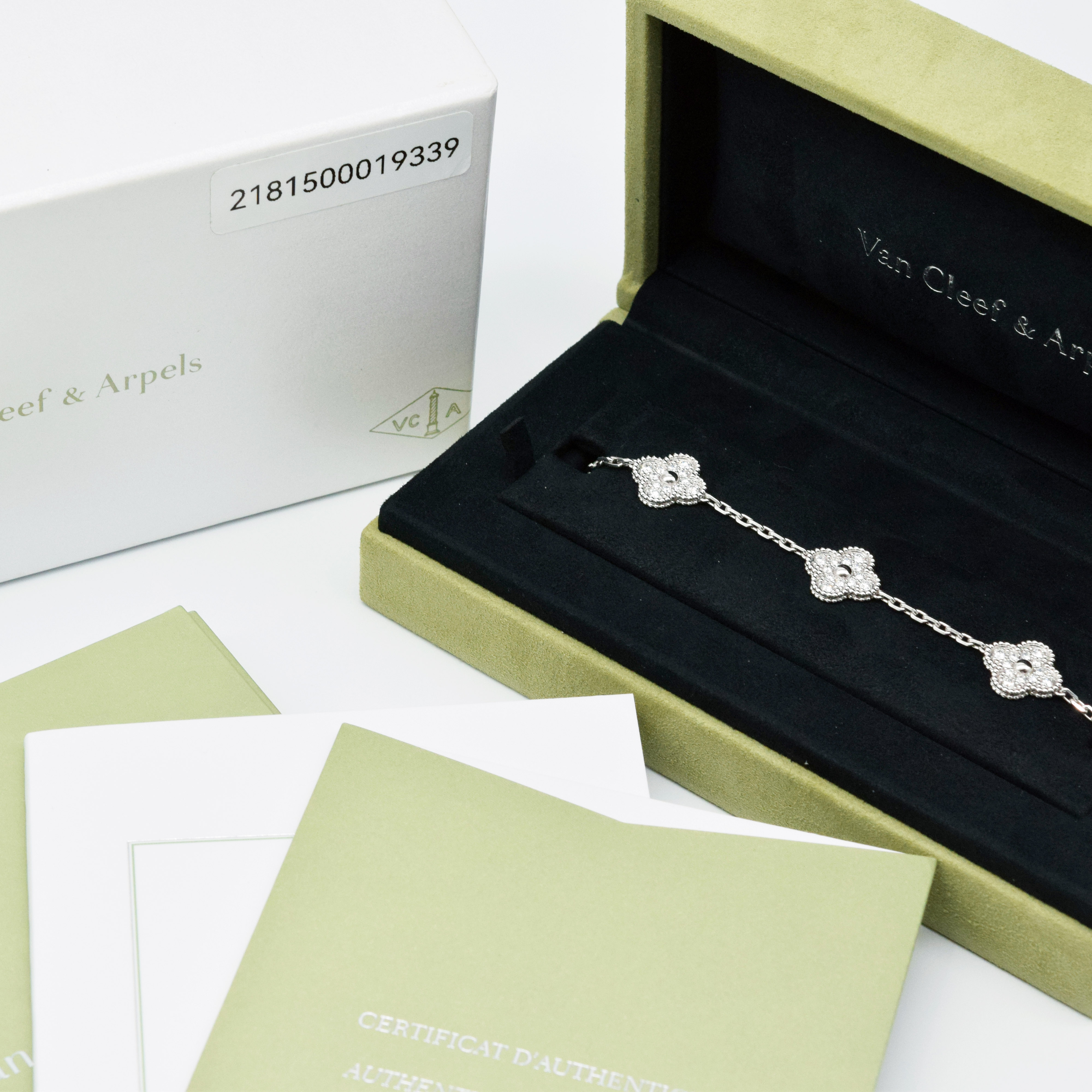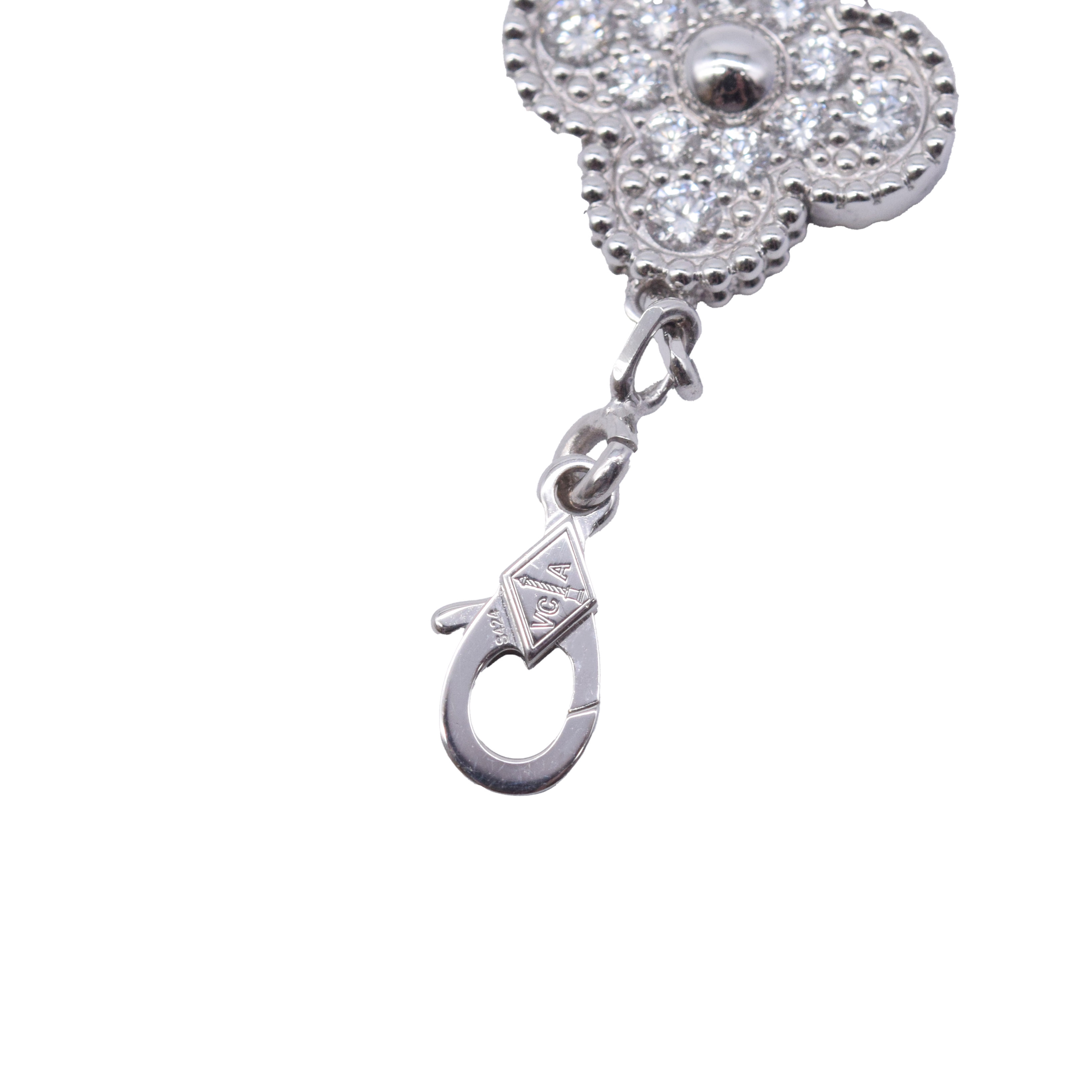 Van Cleef & Arpels/梵克雅寶 VCARA41500 Vintage Alhambra 5枚四葉幸運圖騰 18K白金鑽石手鏈#HK11554